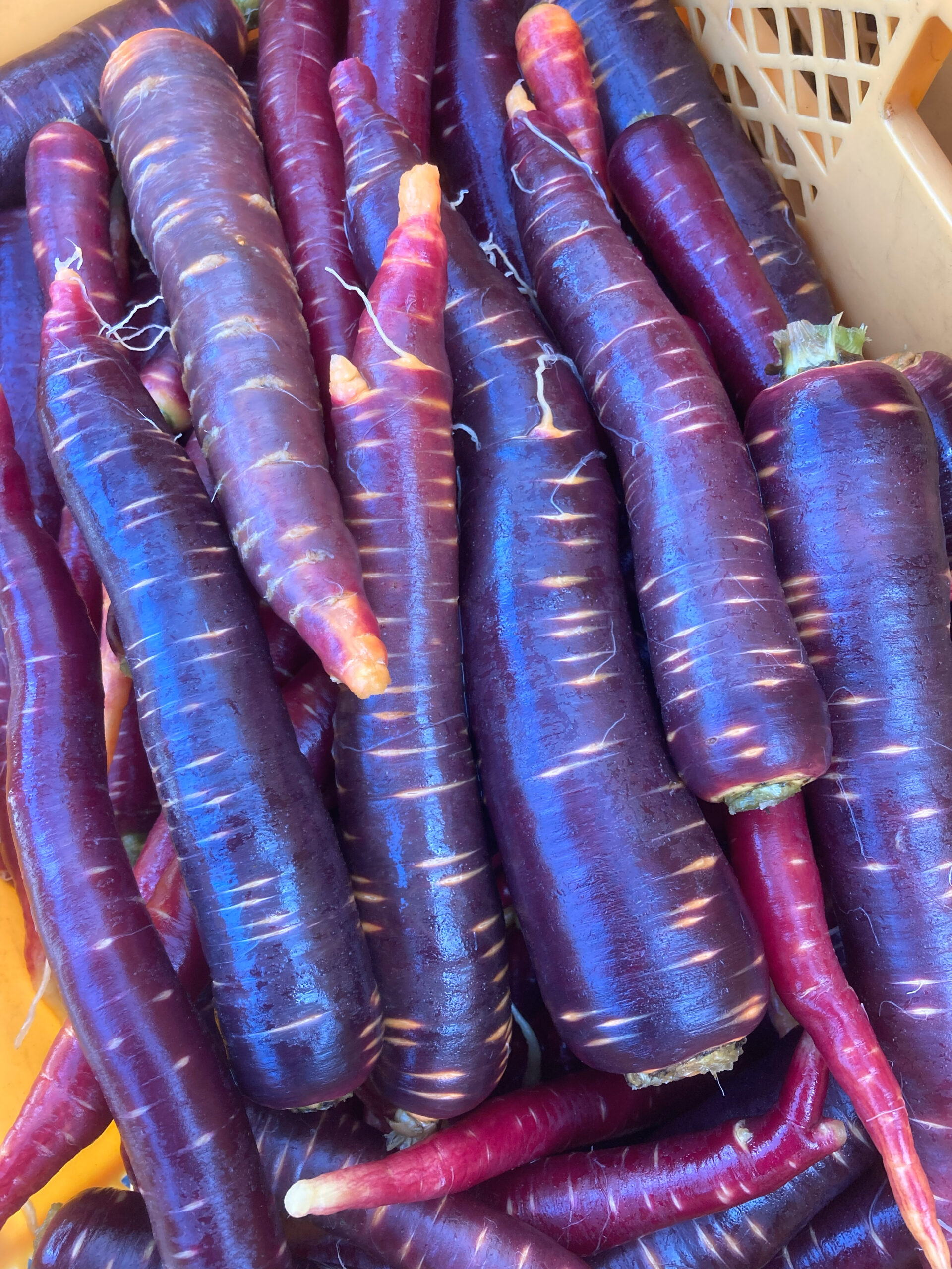 野菜品目:にんじん(訳あり)、ブロッコリー、紫にんじん、白いトウモロコシ、しそ、ゴマ etc